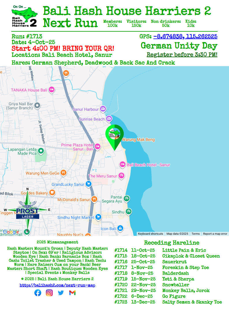 Bali Hash 2 Next Run Map - #1713 - Bali Beach Hotel, Sanur - 4-Oct-25