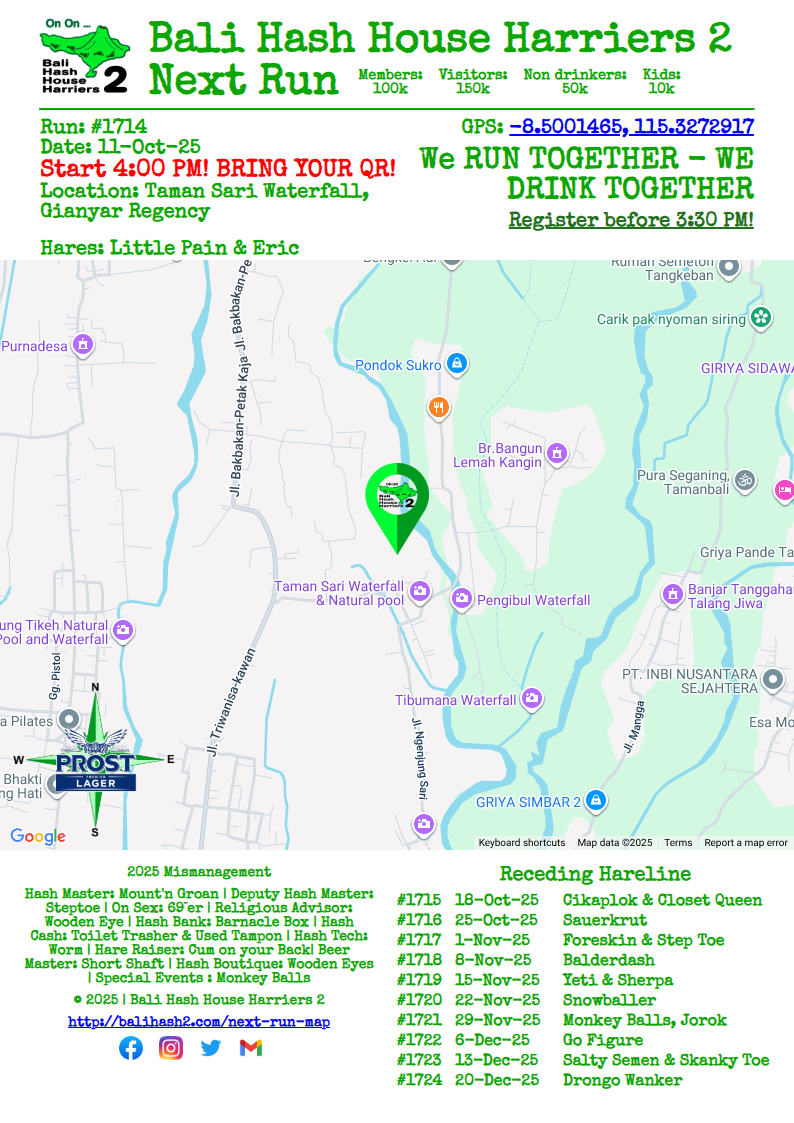 Bali Hash 2 Next Run Map - #1714 - Taman Sari Waterfall, Gianyar Regency - 11-Oct-25