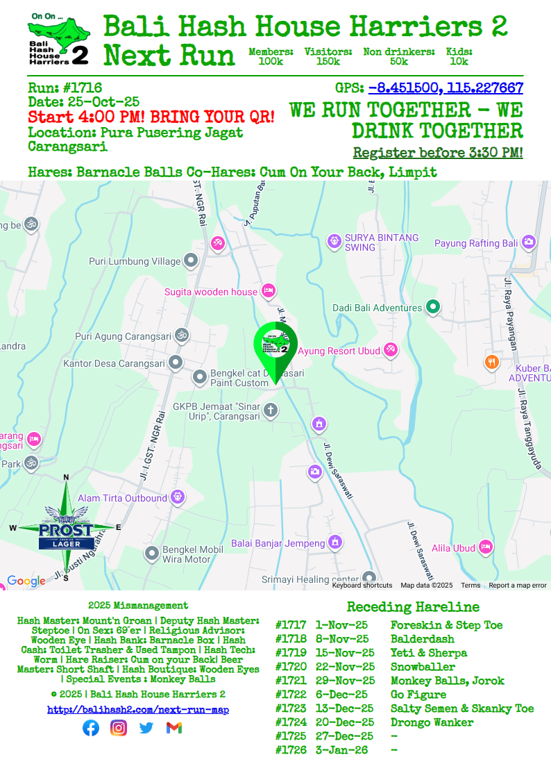 Bali Hash 2 Next Run Map - #1716 - Pura Pusering Jagat Carangsari - 25-Oct-25