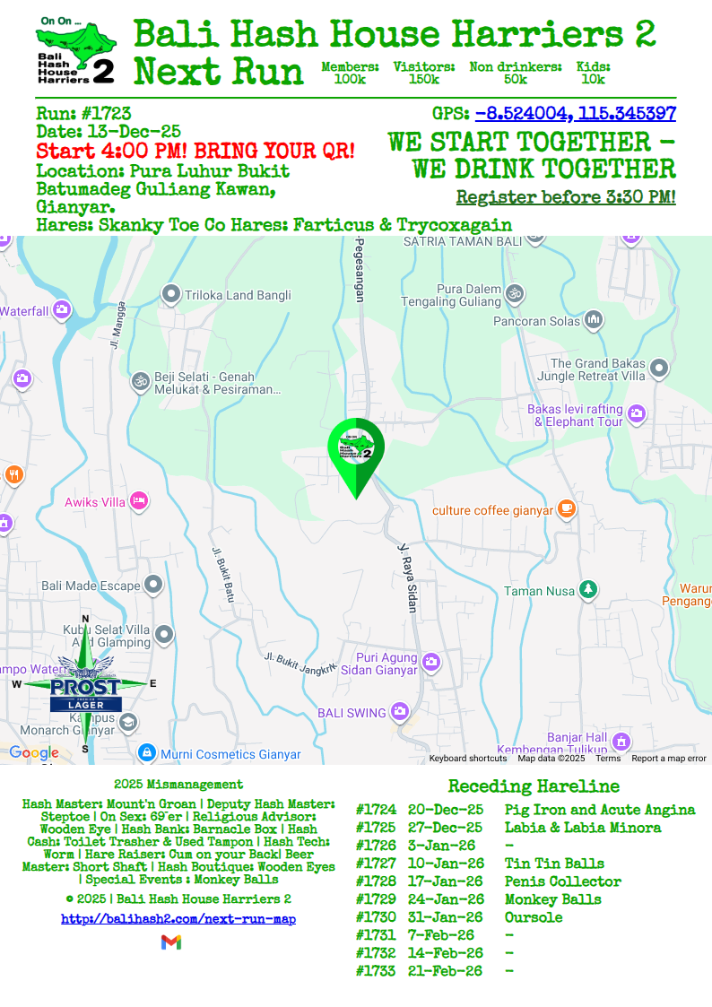 Bali Hash 2 Next Run Map - #1723 - Pura Luhur Bukit Batumadeg Guliang Kawan, Gianyar. - 13-Dec-25