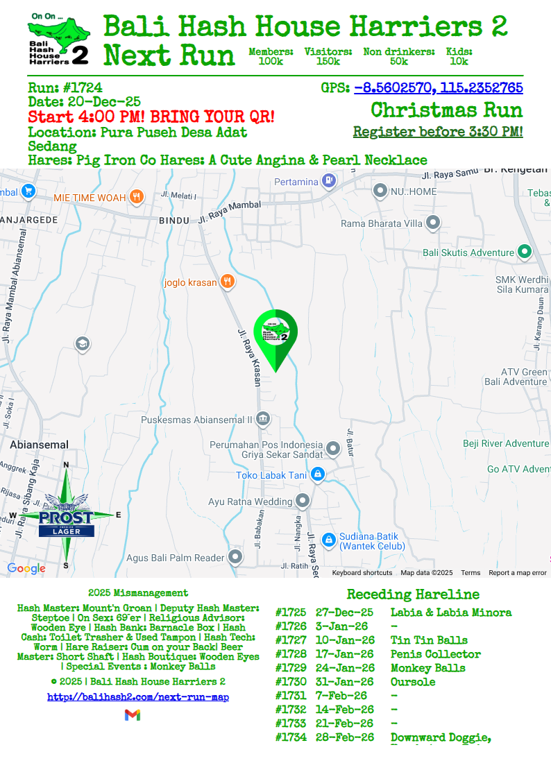 Bali Hash 2 Next Run Map - #1724 - Pura Puseh Desa Adat Sedang - 20-Dec-25