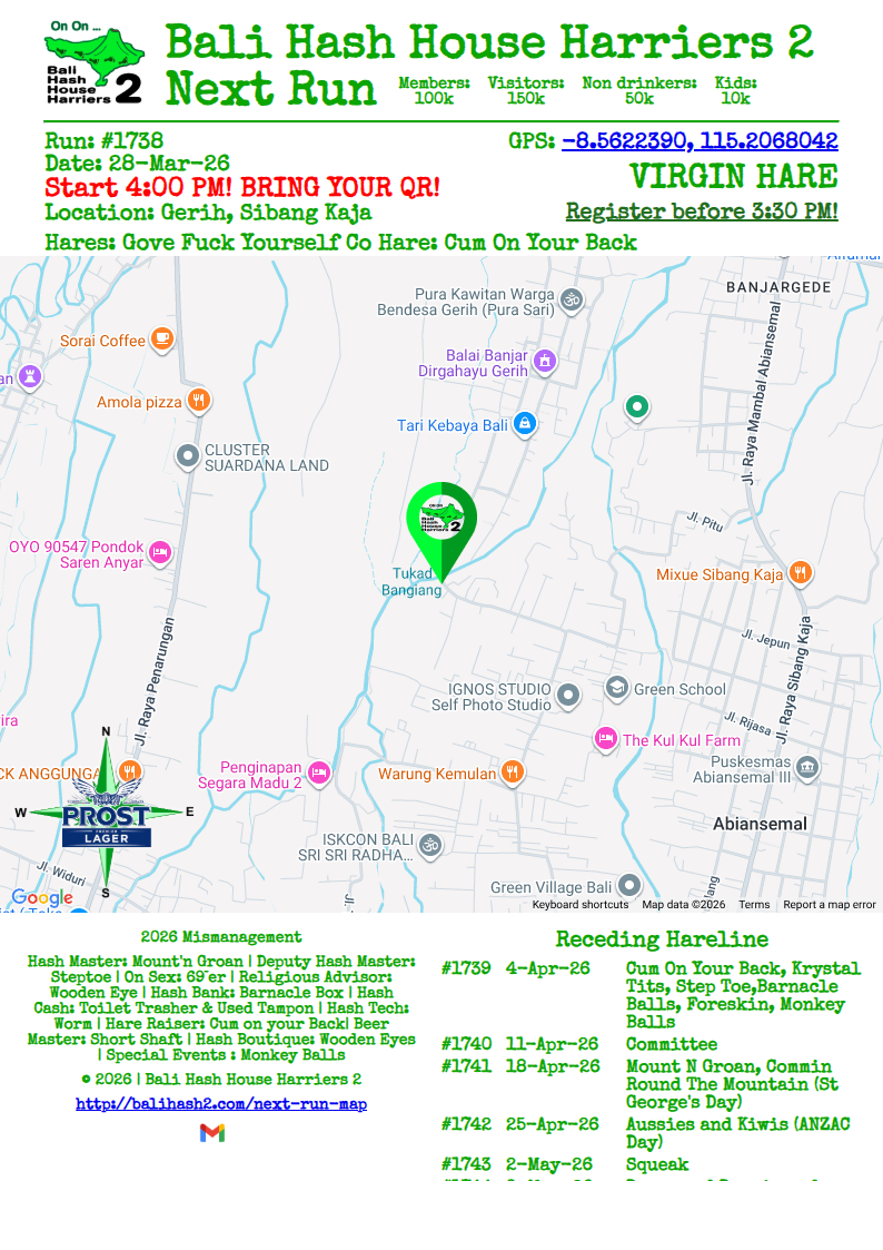 Bali Hash 2 Next Run Map - #1738 - Gerih, Sibang Kaja - 28-Mar-26