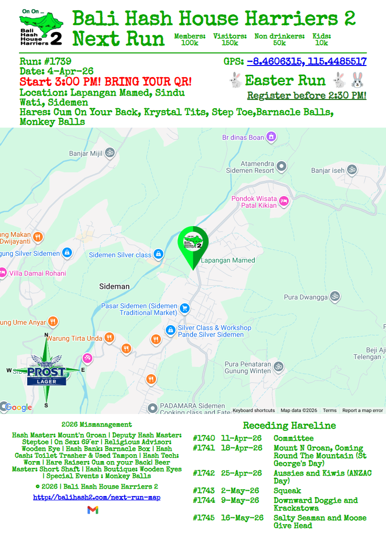 Bali Hash 2 Next Run Map - #1739 - Lapangan Mamed, Sindu Wati, Sidemen - 4-Apr-26