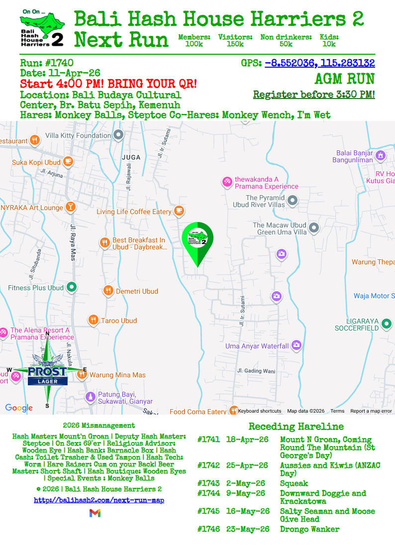 Bali Hash 2 Next Run Map - #1740 - Bali Budaya Cultural Center, Br. Batu Sepih, Kemenuh - 11-Apr-26